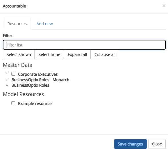 - Search for an existing accountable using the filter text field or browse through the UI.