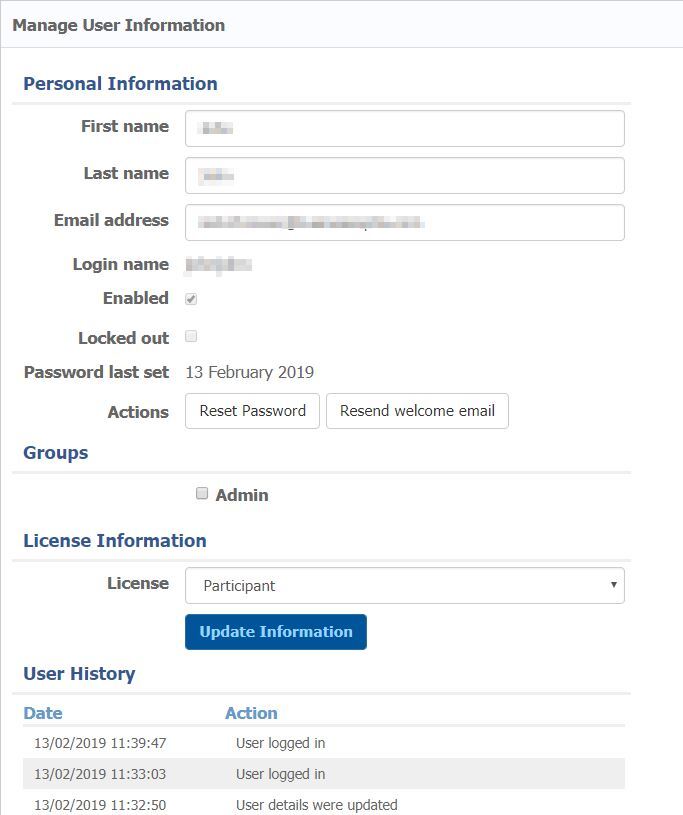 Once clicking the 'Manage' button, the admin will be presented with a user list of all the current existing users added to the library.