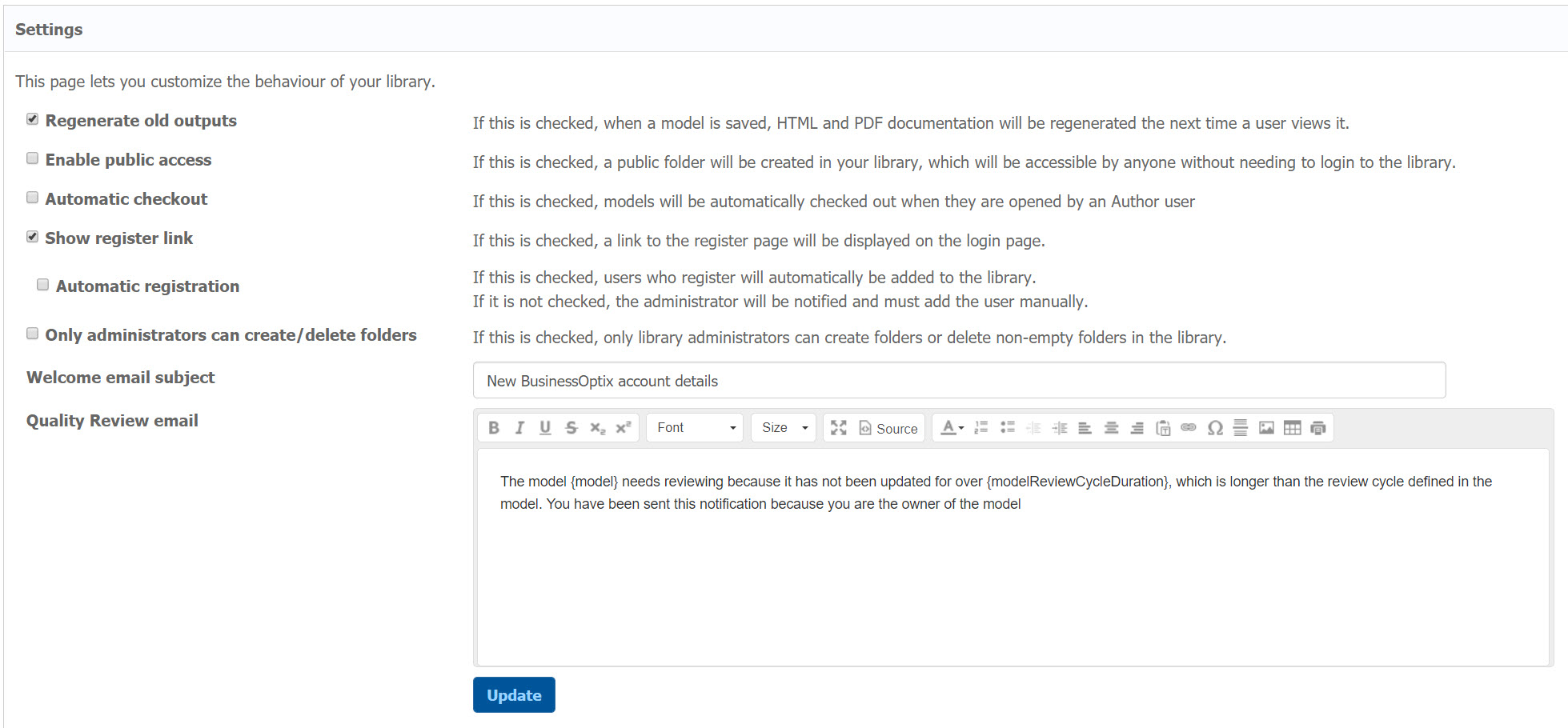 On the right side of the screen, the admin will be presented with all the Library management options. The options under the 'Actions' heading will change depending on what Library Management option is selected.