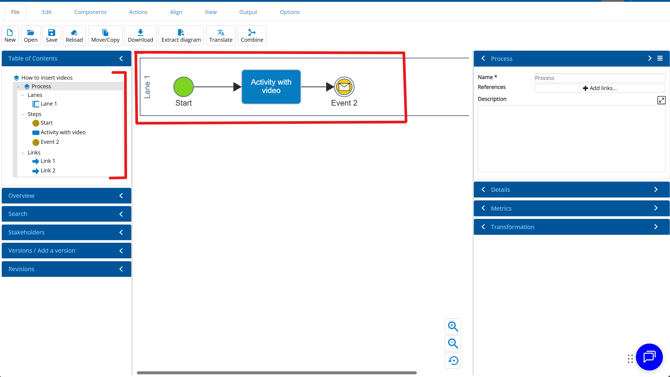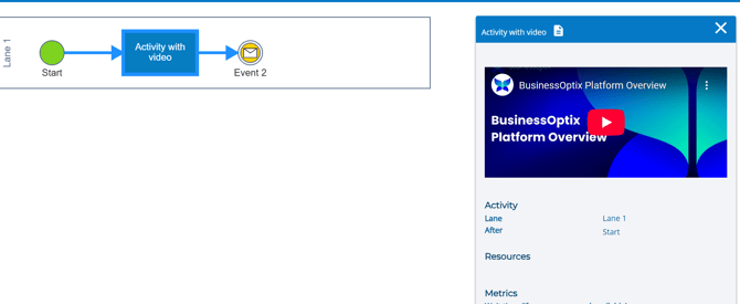 Save the model and view the HTML output. Select the object that you linked the video to, in this instance it was inserted in "Activity with video". You will now see the video being displayed.