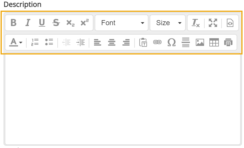 Author allows videos to be embedded in our html editor fields (editor fields are the text entry areas that allow formatting i.e Work instruction or description fields) typically they have a toolbar as seen below.