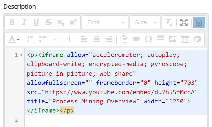 Paste the 'Embed Code' text into the editor, it should look something like this after pasting.
