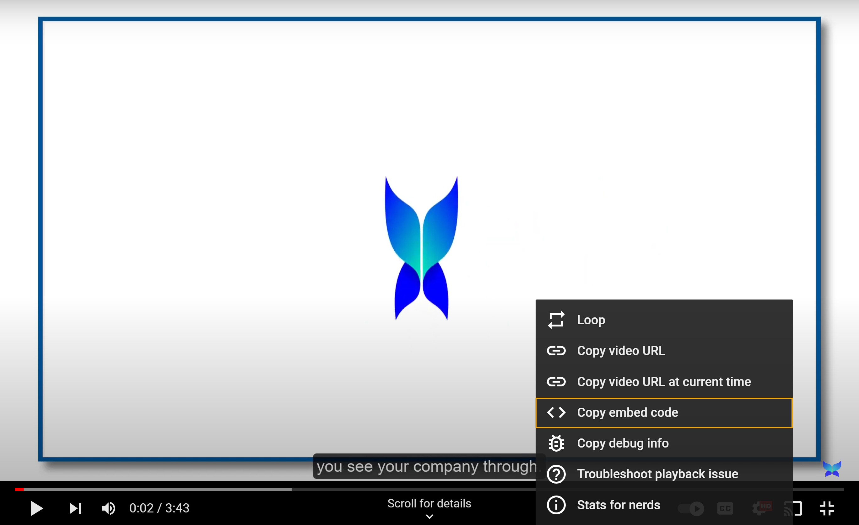 Navigate to the video within YouTube and right click on the video and select 'Copy embed code'