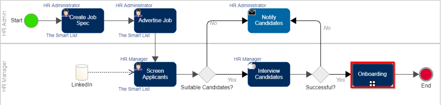 Once the sub-process has been created, the 'End' button can be clicked to go back to the main overall process.