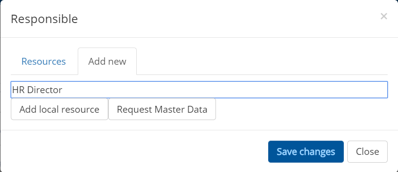 Here, you can add the new role as a local resource or you can request for it to be added as master data. If you're adding it as a local resource, this will be added immediately. For master data, this will be sent as a request to the author of the master data file which needs to be approved.