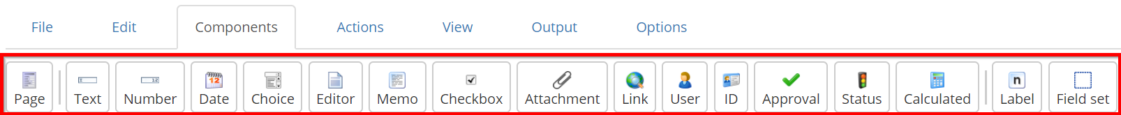 Below are all the components that can be used to create a form with a brief explanation of what that are for.