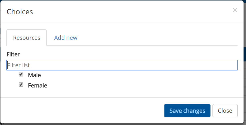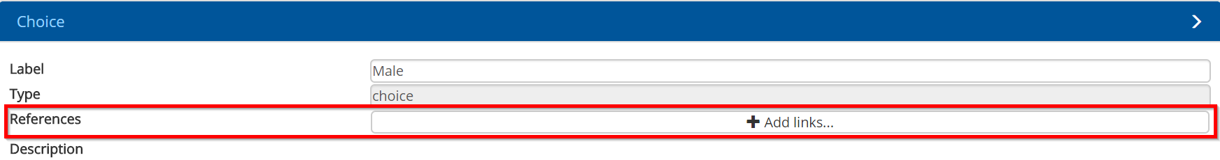 By clicking on the 'Edit' button, a list of choices will open where a new choice can be added as a local resource.