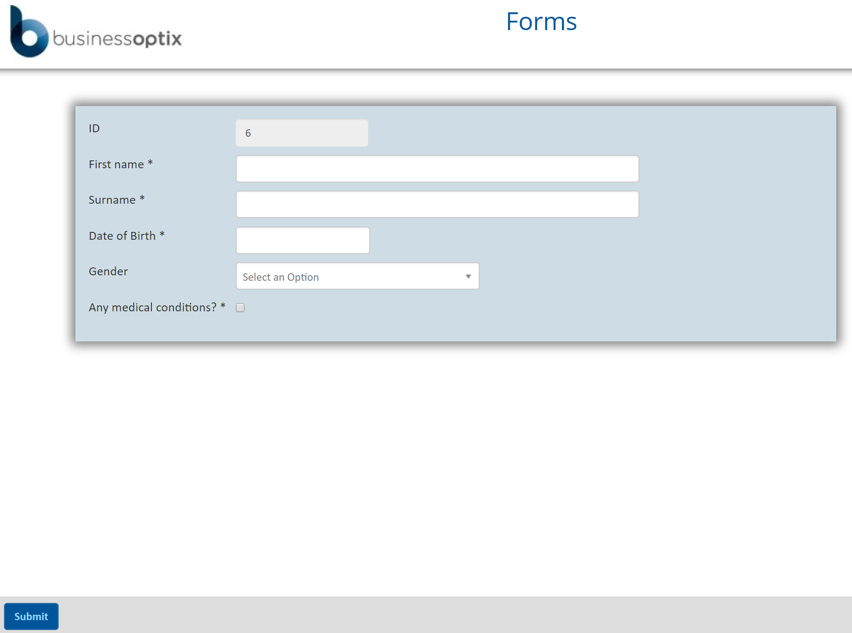Forms allows users to enter specified information. With BusinessOptix, the flexibility surrounding forms is endless. Here we will give you an insight into what can be done with forms in BusinessOptix.