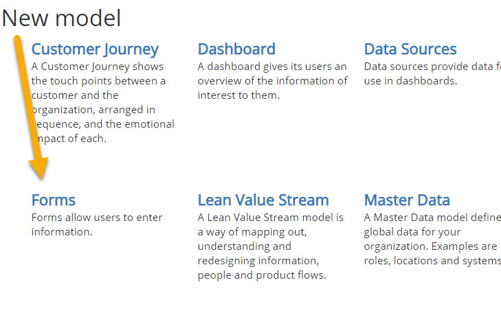 You can specify where the form will be stored once it has been submitted. This can be done by clicking on the Model under the Table of Contents. Due to limitations of the folder, Kanban will not work if forms or models are stored in My Work folders.
