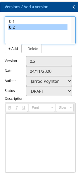 9. In the left-hand sidebar, select Version/Add Version which will display read-only. The author will be able to add a version, but the version number will automatically increment the minor version.