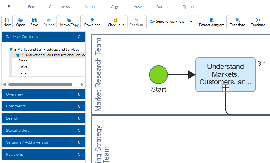 The Web Author in BusinessOptix provides users with the option to extract a particular process from a model into a new model of its own. This can even apply to a sub-process as well as the main process itself.