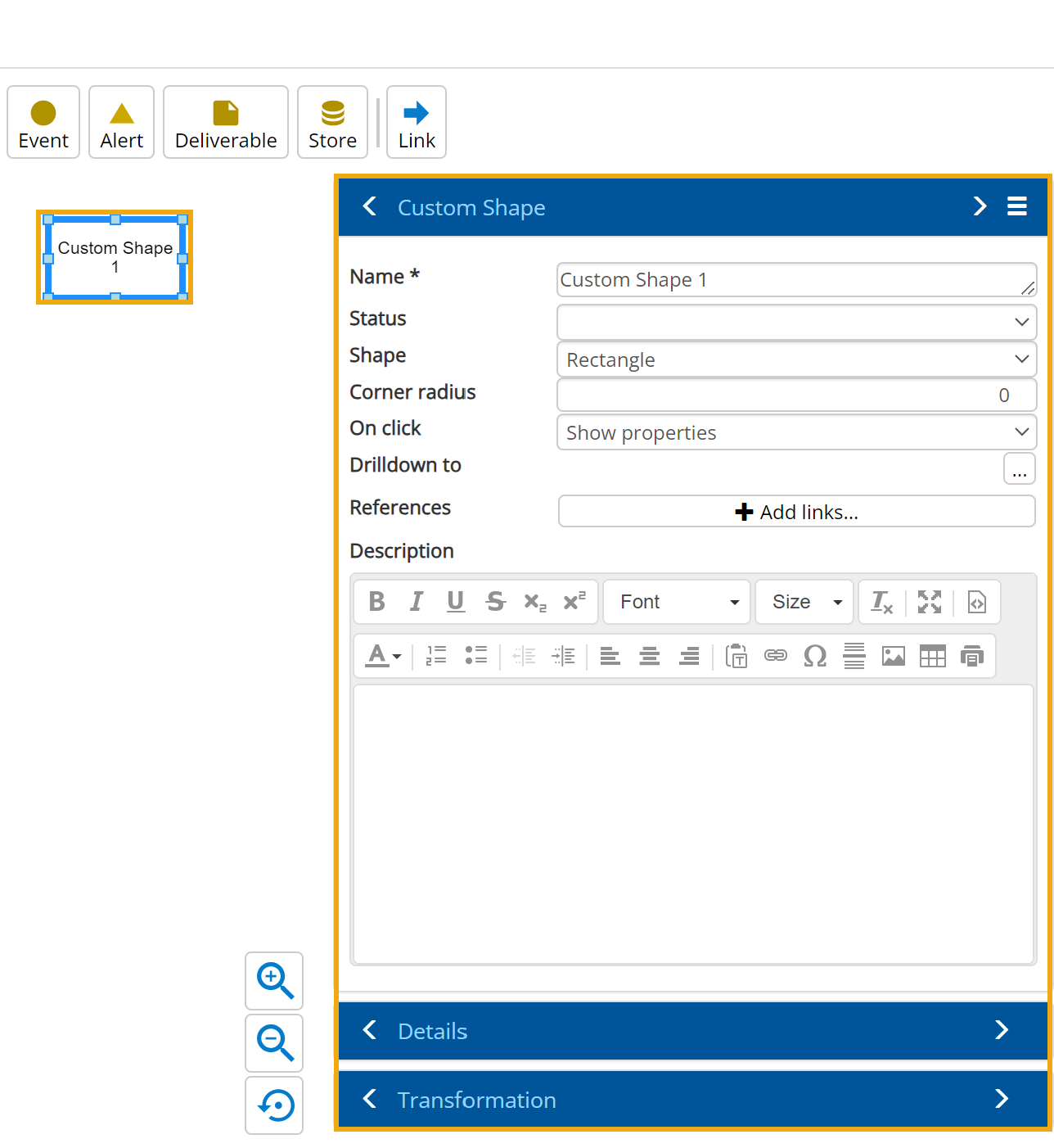 On a new Diagram document, select the required components for your diagram model and populate the details for each one.