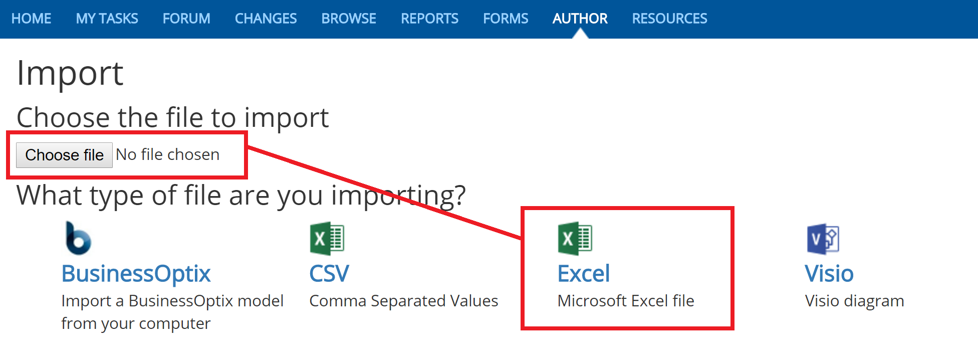 Then select the 'Choose file' button and navigate to your excel file, once selected click the 'Excel' button.