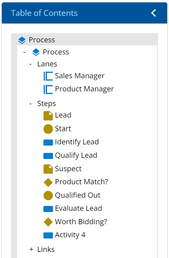 | Link | Shows the sequence of steps in the process. |
