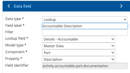Component data sources have been extended to allow you to return properties from the lookup component. For example in a process model activity you may want to include information about the accountable role that is captured in Master Data.