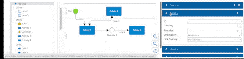 Select the Details tray for the process model and you can change the link spacing on a process map by process map basis. [Library Update Required to Enable]