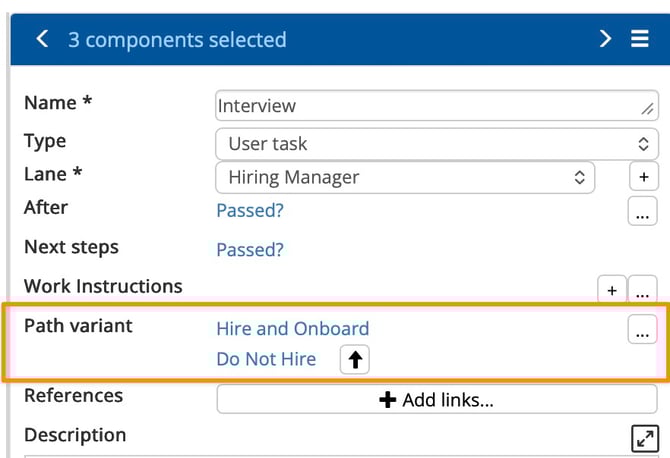 - On the Path Variant property you can then see the currently selected variant paths(s). And by clicking on the ellipsis to the right you can change the variant path(s) applicable. You can add or remove path variants from each step at any time.