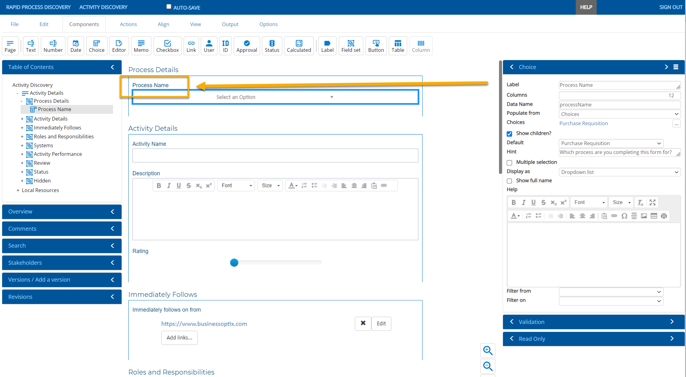 How to Edit an Activity Discovery form: BusinessOptix Author