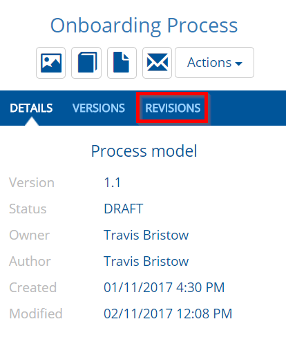 When editing a model in BusinessOptix in the Shared folder, a new Revisions tray is shown which shows the history of all the changes made to the model. You can use this list to remove unwanted revisions and compare the changes between revisions.
