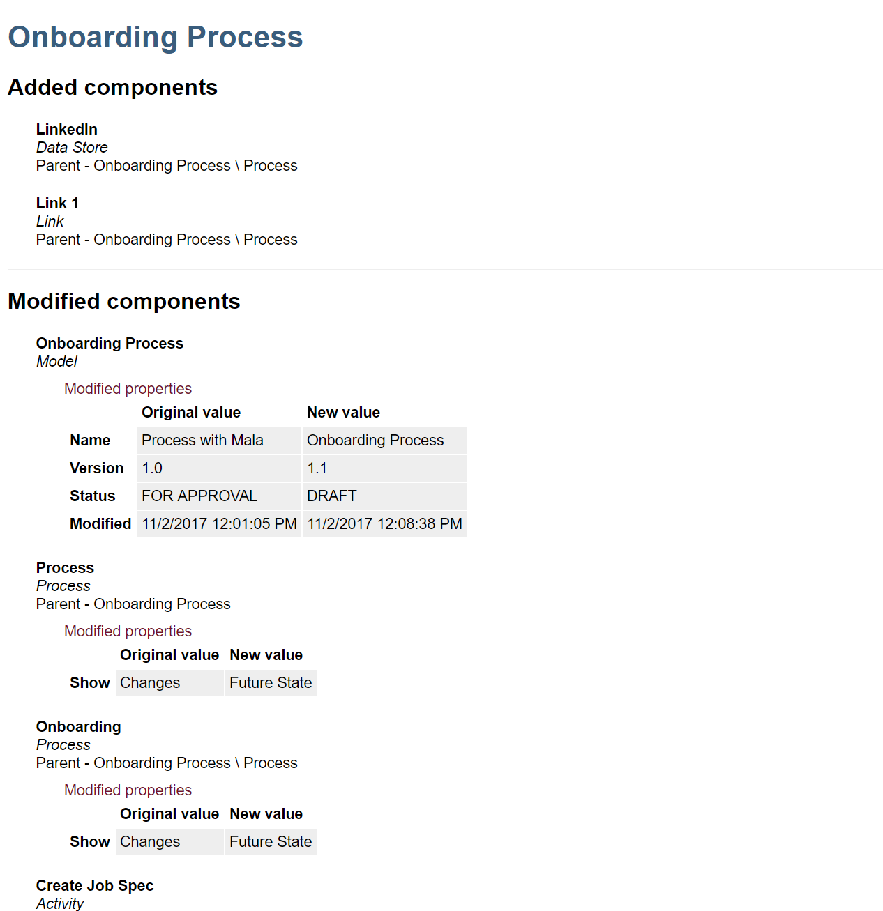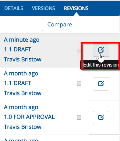 You can compare model revisions with each other by selecting the models you want to compare and clicking the 'Compare' button.