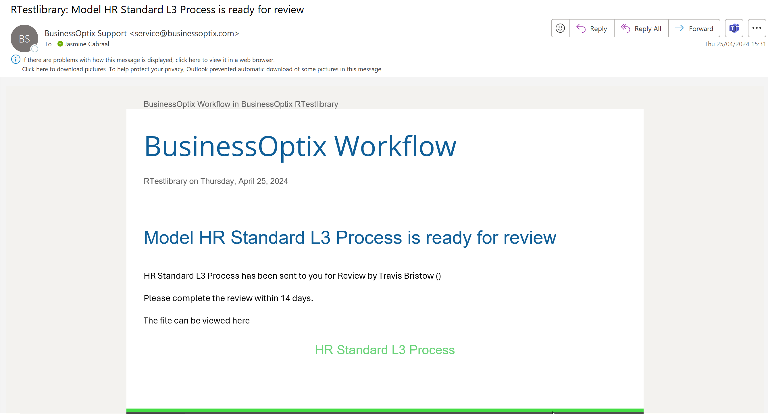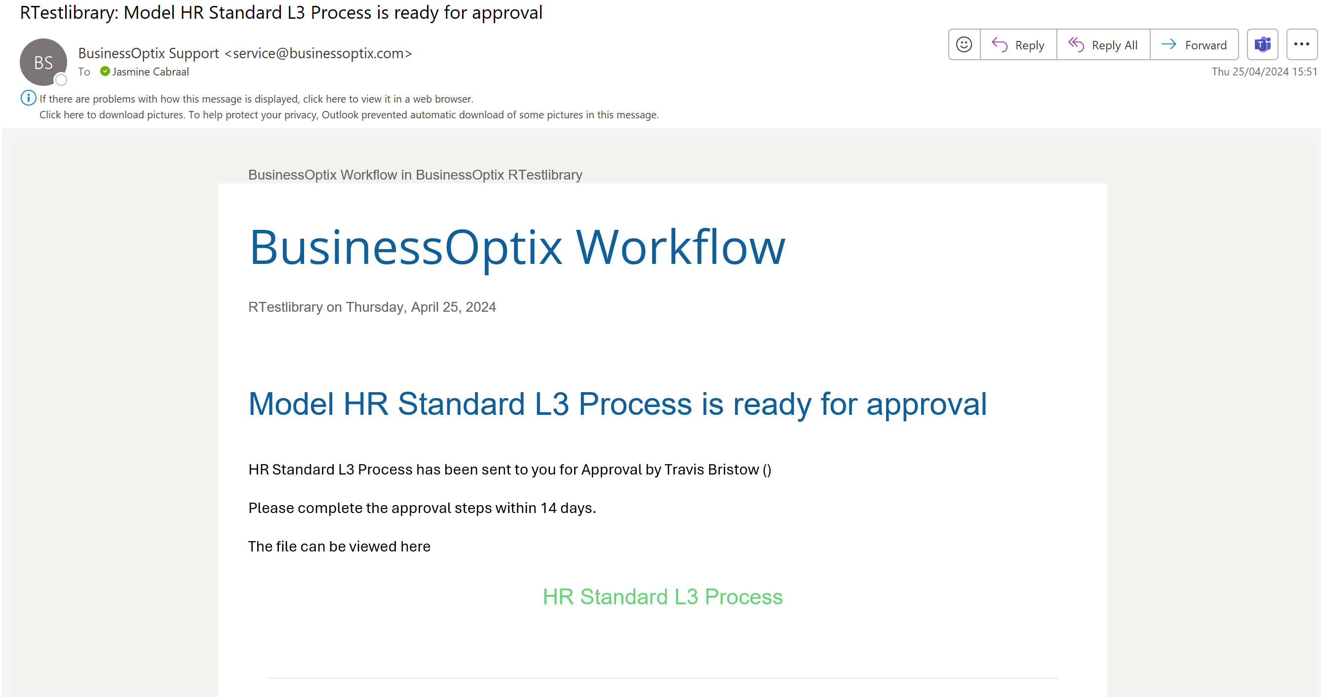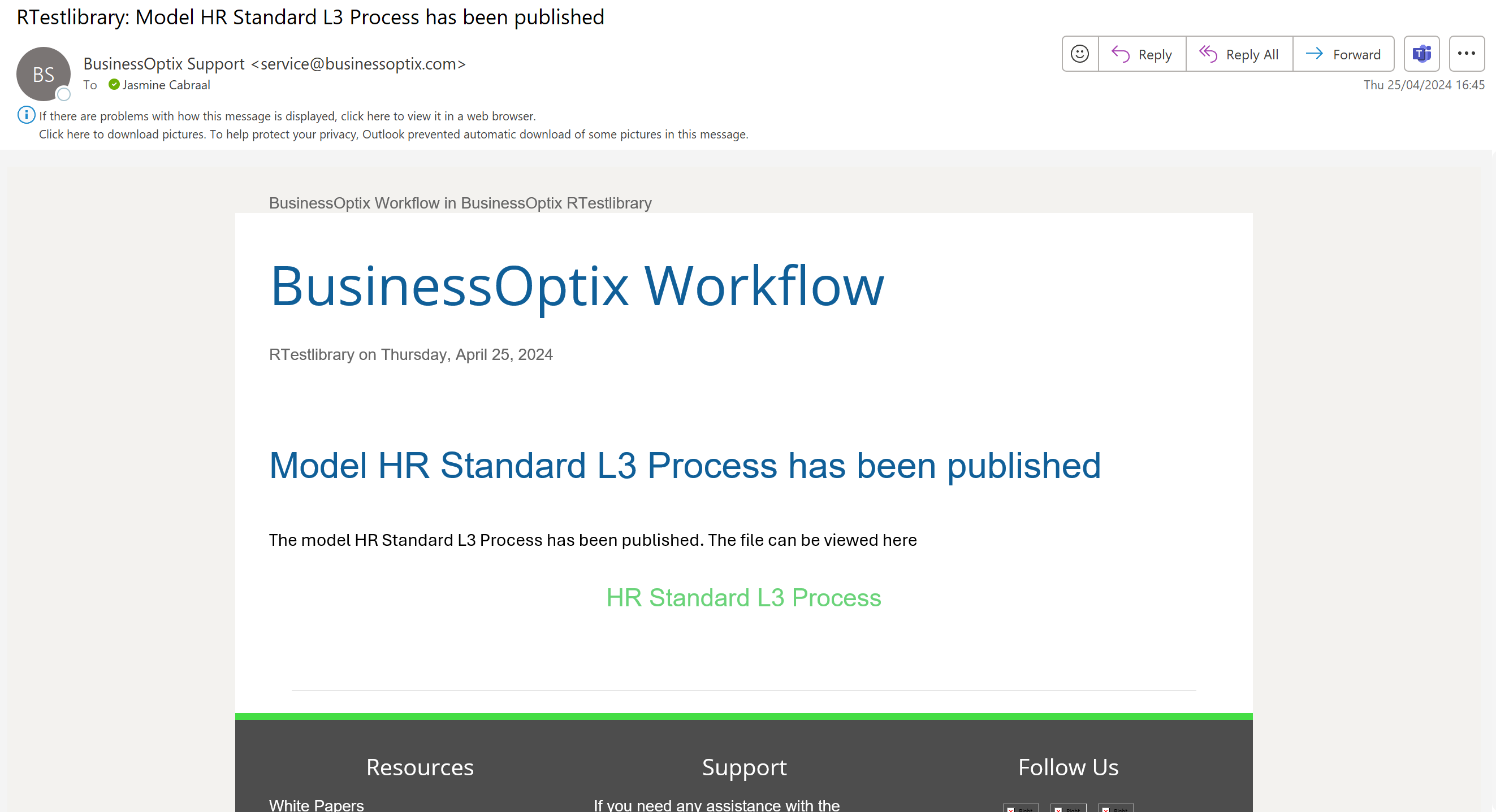 When the Approver has approved the model, the author will receive an email informing them that the model has now been published.