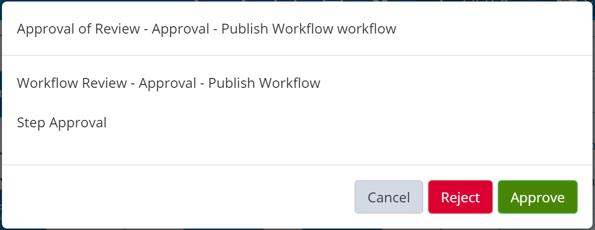 When the link has been clicked, the Approver has a choice of whether they approve or reject the model from the pop-up that appears by selecting the Approval button from the actions tab.