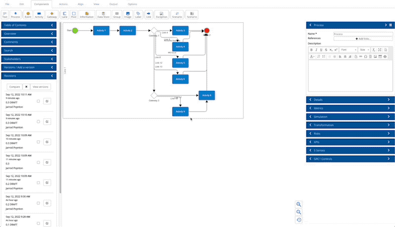 When you are making changes to your business process there are times when you want to understand the difference between the process at different points in time. In BusinessOptix Author we've added a visual comparison option to the text based process difference already available.