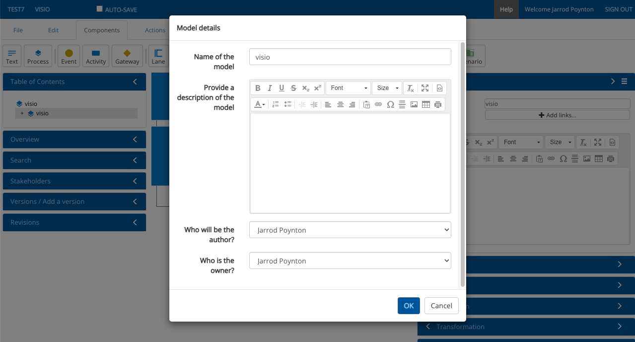 Changes have been made to two of the importers. And more generally following the successful import of a new model you will now be prompted to add model level details such as the name, owner, author and description. This is all the same information you are prompted for when creating a new model directly in Author.